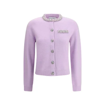 Self-Portrait’s jeweled Cardigan is a bright and refined piece perfect for adding an elegant touch to your look. Featuring a rhinestone-embellished crew neck, it features a front closure with matching jeweled buttons and an embellished breast pocket on the front. Ribbed cuffs and hem complete the design with a classic, structured touch.