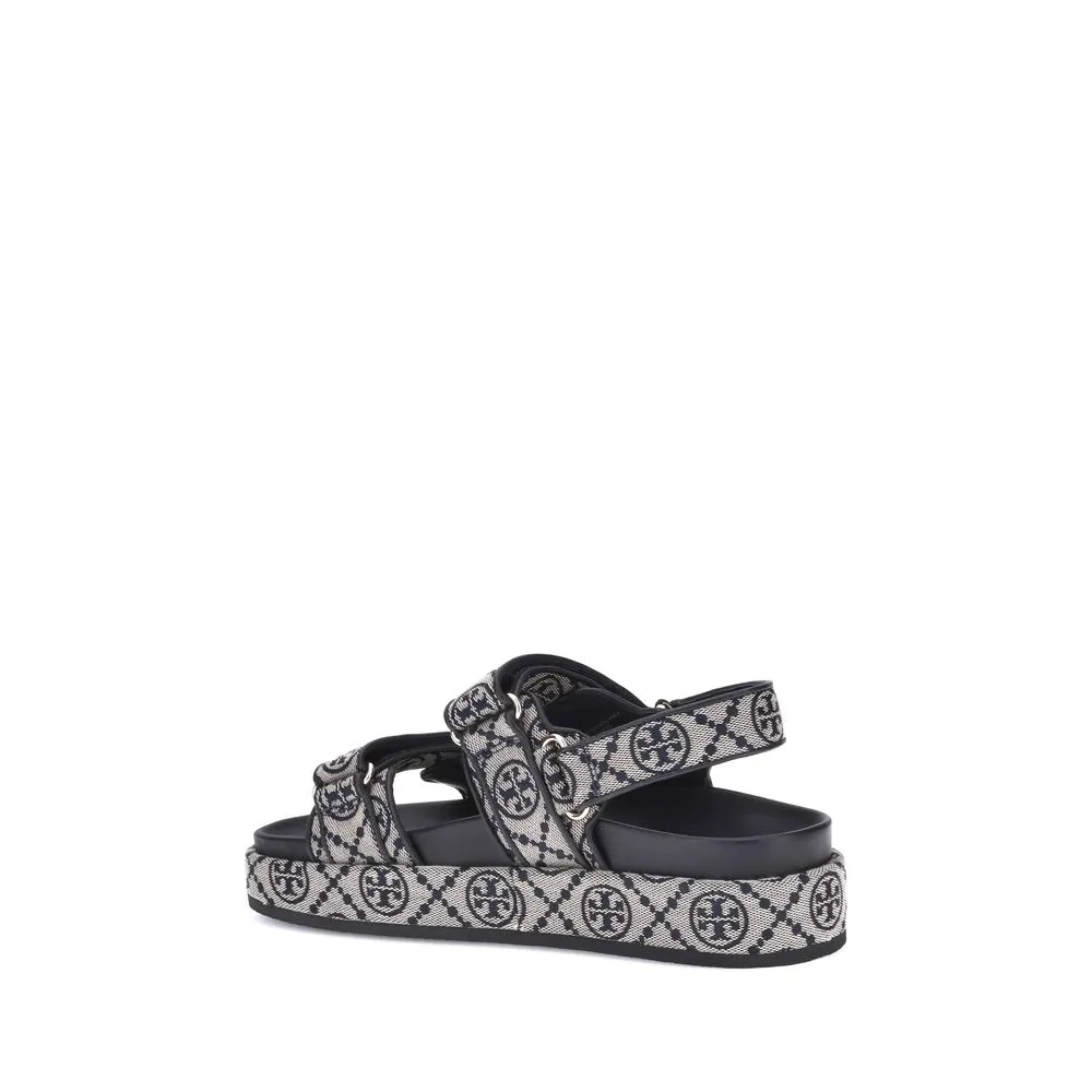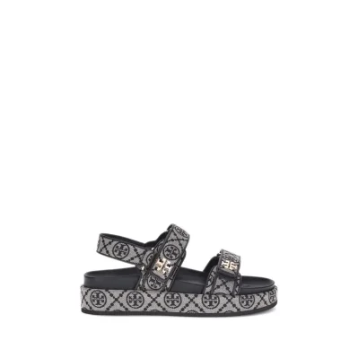 Tory Burch’s Kira Sandals offer a refined take on the classic sporty sandal. Made of jacquard with the unmistakable Monogram T, they combine style and functionality. Equipped with an extremely comfortable insole and rubber sole, they ensure all-day comfort. The practical laces with Velcro closure are embellished with the iconic logo for a distinctive touch in even the most casual looks.
