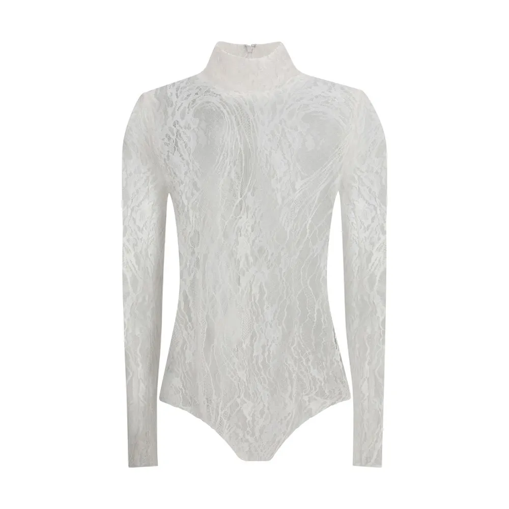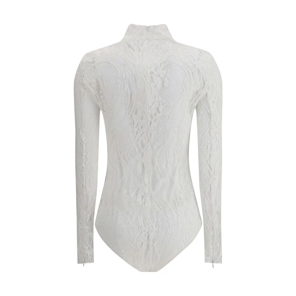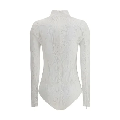 The Balmain lace Bodysuit is a seductive and sophisticated piece, featuring a refined high neck that enhances the elegance of the design. Crafted from sheer lace, it features a zip fastening on the back and buttons on the briefs, for a comfortable and structured fit. A distinctive piece, perfect for bold and feminine looks.