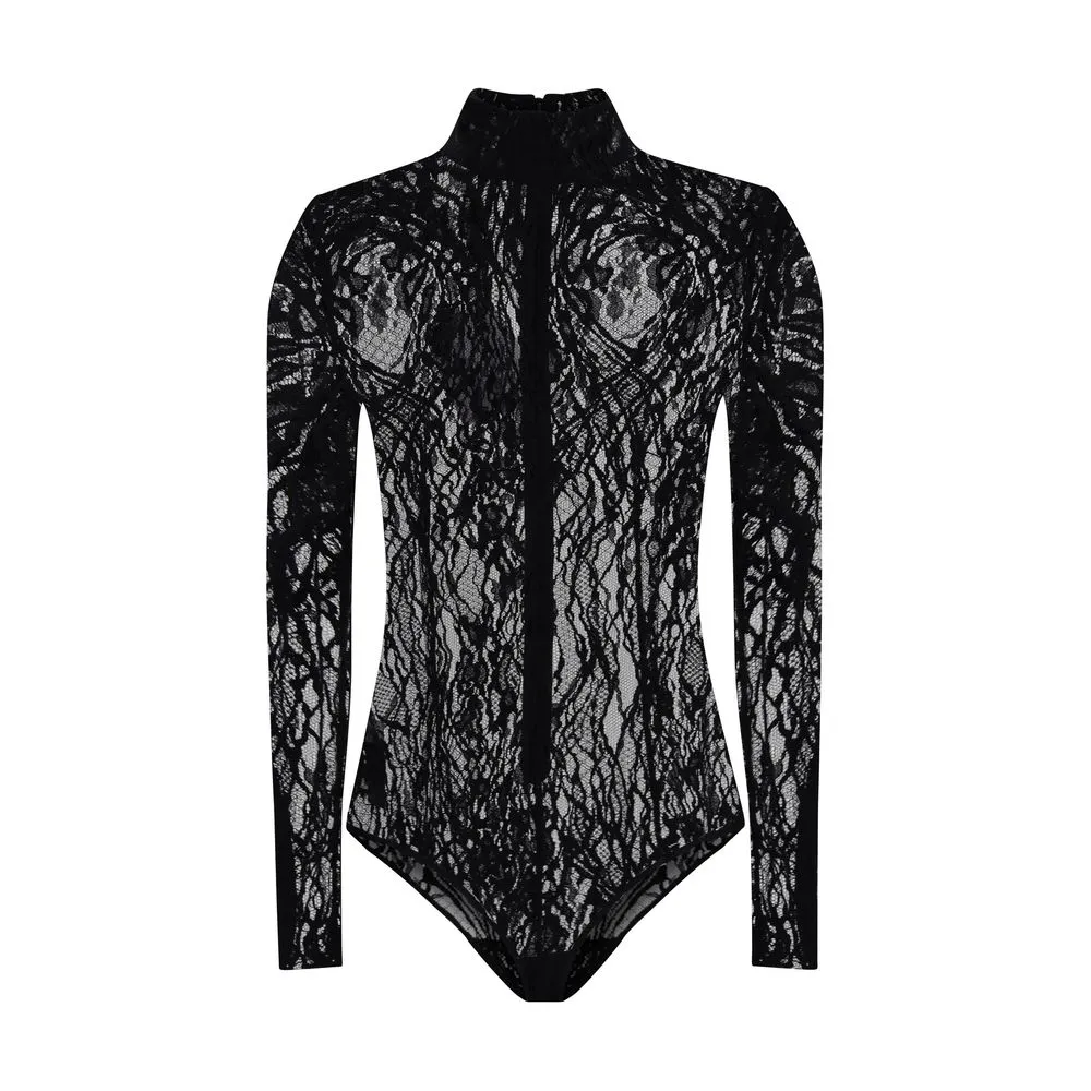 The Balmain lace Bodysuit is a seductive and sophisticated piece, featuring a refined high neck that enhances the elegance of the design. Crafted from sheer lace, it features a zip fastening on the back and buttons on the briefs, for a comfortable and structured fit. A distinctive piece, perfect for bold and feminine looks.