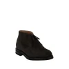 Calfskin Lace-Up Shoes by Church’s, an ankle-length design, extended toe, lace-up front closure, slight leather block heel, suede leather design, press-on logo insole.