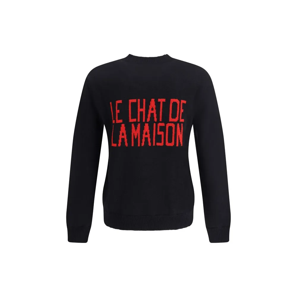 Made from a blend of wool and cotton, Valentino’s Le Chat De La Maison Sweater is a piece of sophisticated comfort. The ribbed crew neck and ribbed hems on the sleeves and hem add a touch of casual elegance, while the Le Chat De La Maison patch on the chest lends a distinctive and recognizable detail. A perfect garment for those seeking a balance between style and comfort.