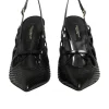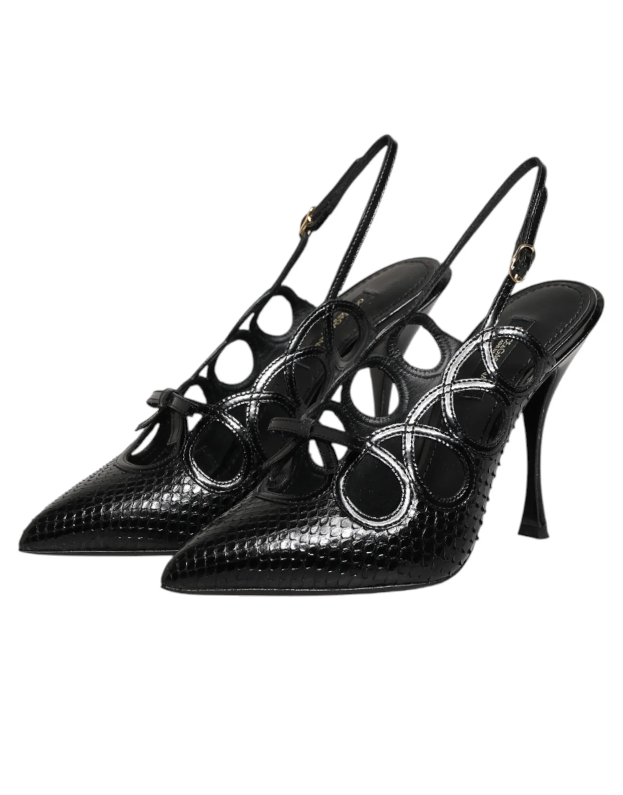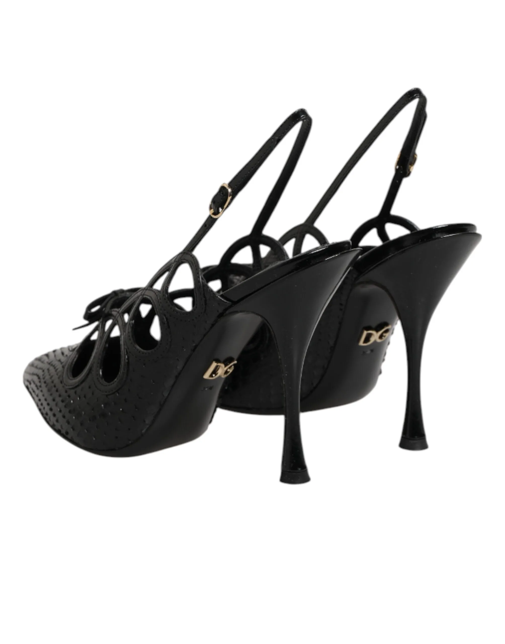 slingback heels are a timeless expression of elegance and craftsmanship. Made from premium black leather, they feature a pointed toe and a sleek high stiletto heel that elongates the leg. The adjustable slingback strap ensures a secure and comfortable fit. Perfect for both formal and evening occasions, these heels embody classic Italian sophistication.