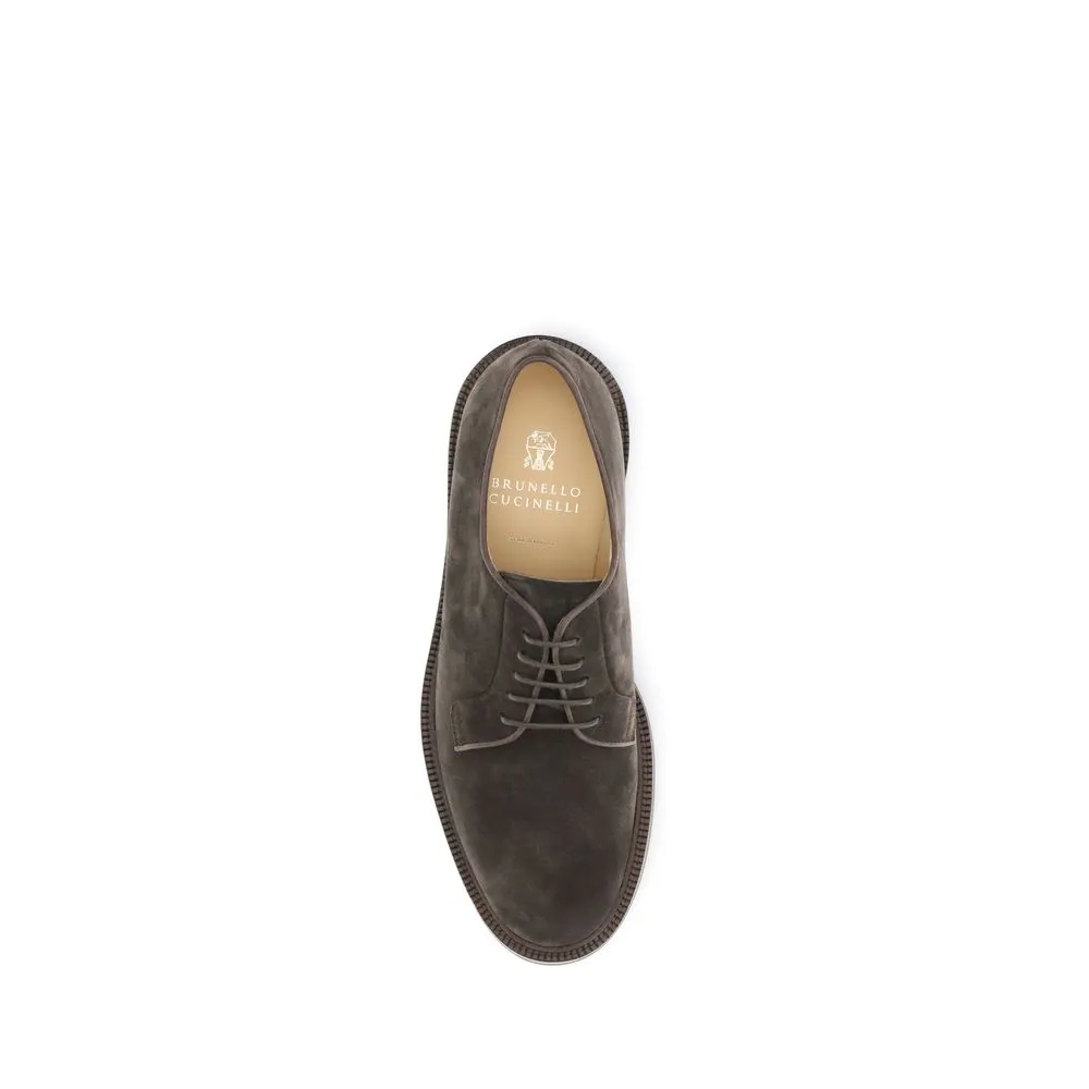 Brunello Cucinelli’s leather Lace-ups feature a soft suede design, a lace-up front fastening, and a leather block sole. The contrasting logo insole adds a distinctive and refined detail.