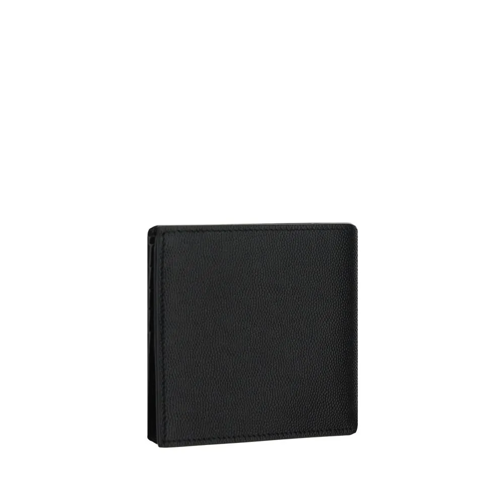 Calfskin Wallet by Saint Laurent, billfold design, interior card slots, bill compartment, iconic brand signature press-stamped on front, grained leather design.
