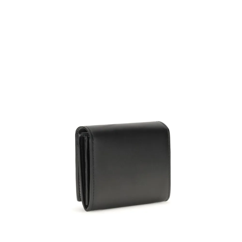 The Leather Wallet by Maison Margiela is a compact and sophisticated accessory. Crafted in black leather, it features logo lettering on the front and a foldover design. The interior is organized with three card slots and an internal zip pocket. An essential and practical design, crafted in Italy with artisanal care.