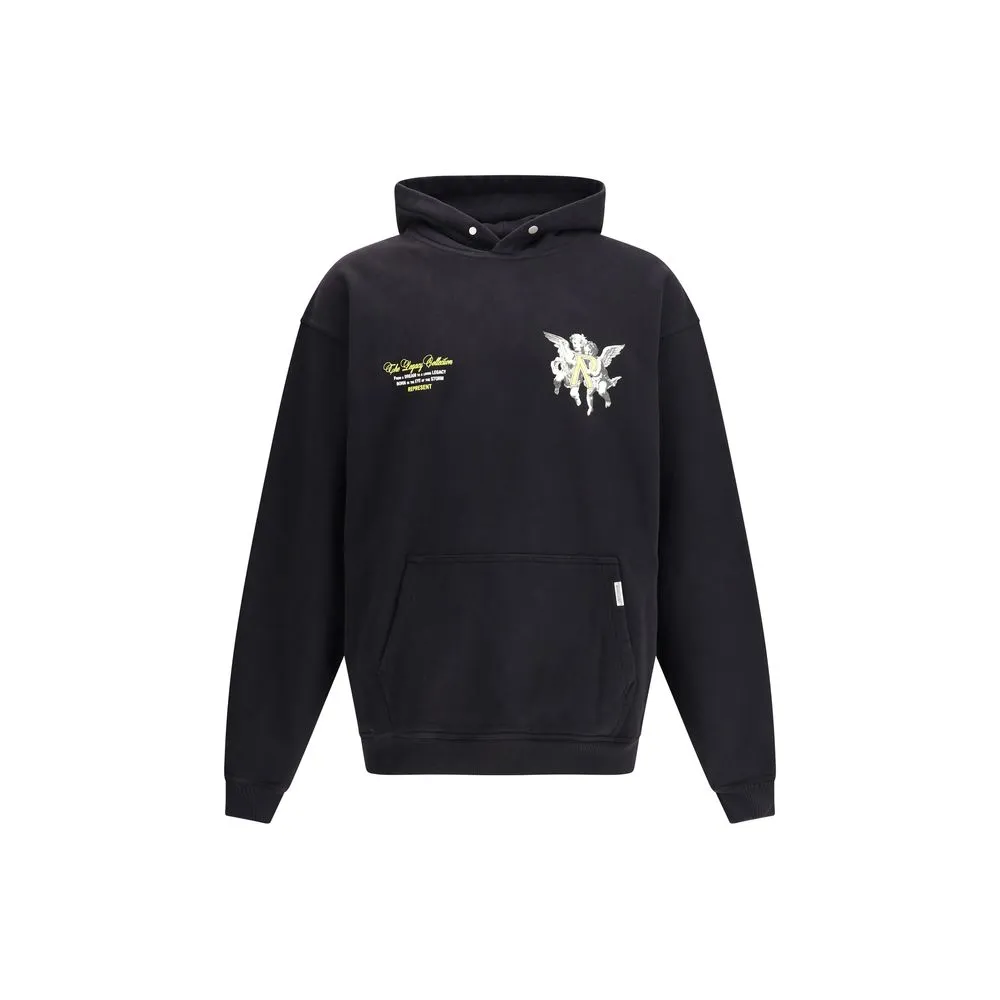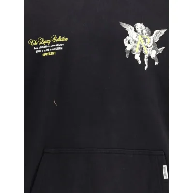 The Jet Black Legacy Cherubs Hoodie features an oversized fit, ribbed hem and cuffs for added structure, and the signature metal bar detail at the pocket. Front and back screen prints of the Legacy Cherubs artwork, finished with a bold high-build effect, add depth and striking detail