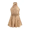 Zimmerman’s Leopard Short Dress combines a bold pattern with refined details. Featuring a concealed back zipper closure and partial front button closure, the design offers practicality and elegance. Side-stitched pockets add discreet functionality, while the lightweight, natural linen fabric is complemented by a detachable raffia belt that defines the waist with a summery, sophisticated touch.