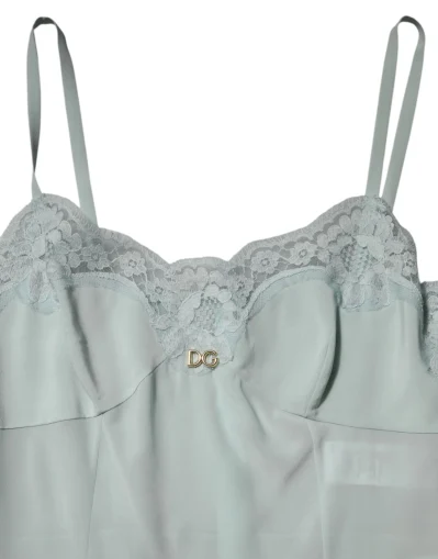 Light Blue Silk Lace Midi Bodycon Slip Dress