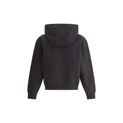 The Saint Laurent Hoodie is a garment that combines comfort and urban style, with a simple yet refined design. The adjustable drawstring hood offers functionality and the possibility of customizing the fit, while the kangaroo pocket adds practicality and a distinctive detail. The ribbed cuffs and hem ensure a comfortable and well-defined fit. The iconic brand logo, sewn tone-on-tone on the front, gives a discreet yet recognizable touch of elegance. Plush interior.
