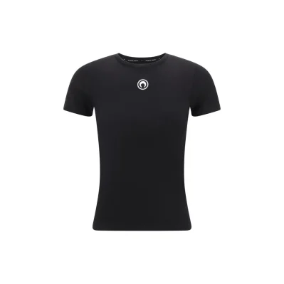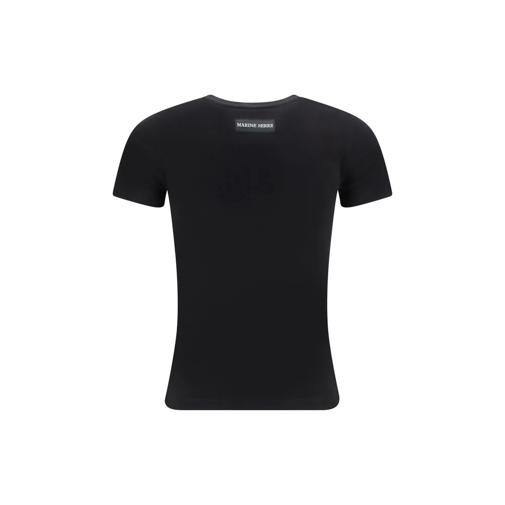 The Marine Serre cotton T-Shirt features a ribbed crew neck and the iconic contrasting embroidered logo on the front. The slim fit accentuates the silhouette, offering an elegant and modern look.