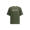 Cotton T-Shirt by Gucci with an essential and recognizable design. Featuring a classic ribbed crew neck, it features the iconic contrasting monogram printed on the front, a distinctive detail that enhances the garment with a touch of timeless style. A casual must-have to complete your wardrobe with contemporary elegance.
