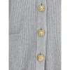 The long cashmere Cardigan by Balmain represents the perfect fusion of comfort and sophistication, typical of the brand. The soft, elongated line is defined by the deep V-neckline and ribbed edges that emphasize its structure with balance and fluidity. Golden lion-head buttons, the iconic symbol of the house, add a precious accent that contrasts with the simplicity of the design. Patch pockets at the sides complete a garment designed to wrap with relaxed elegance and contemporary spirit.