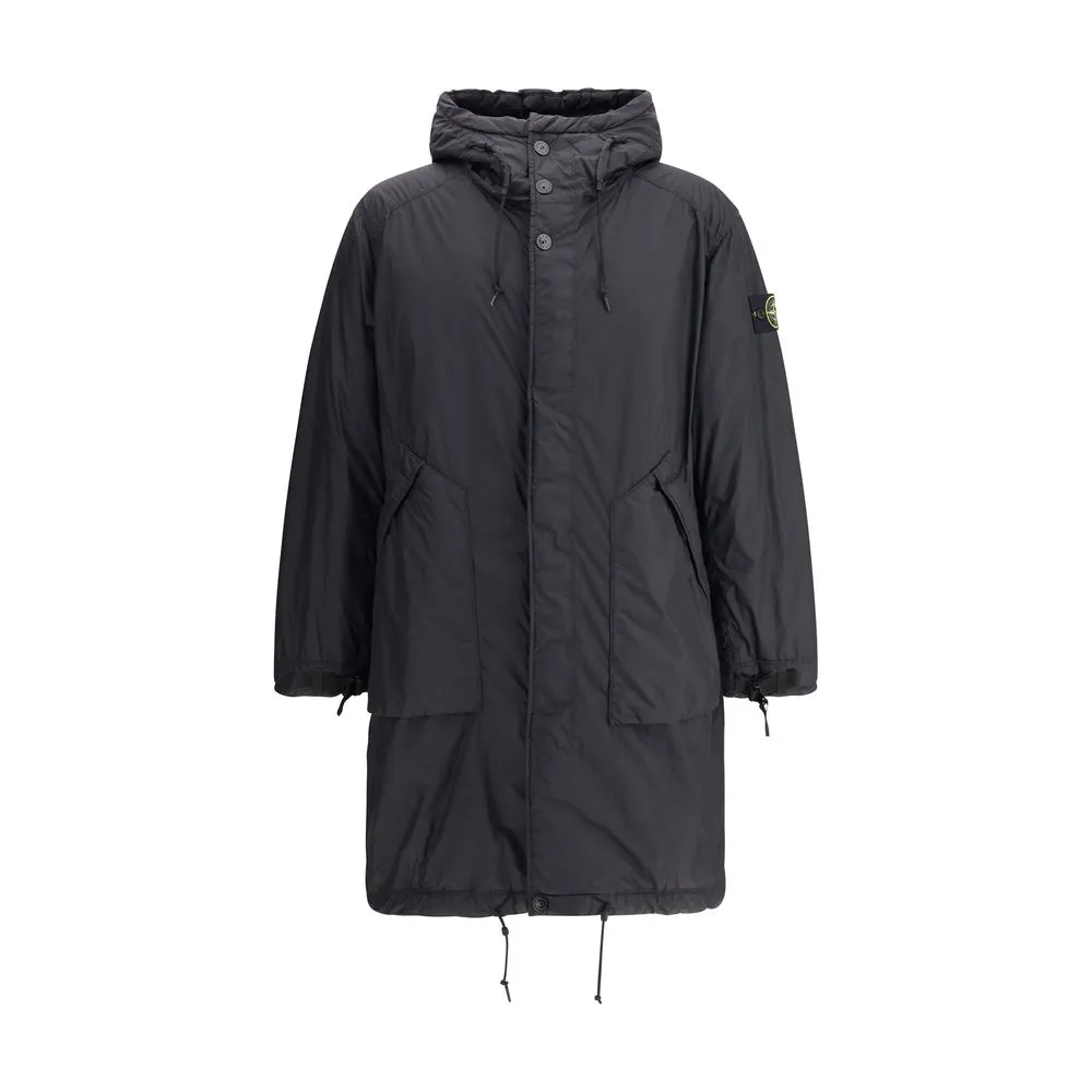 Stone Island’s long Down Jacket combines protection and style in a functional design. Featuring an adjustable drawstring hood and front zipper and snap-button closure, it has two maxi patch pockets on the front and an adjustable hem for a customized fit. Complemented by the iconic logo patch on the left sleeve, it is perfect for facing the coldest days with character.