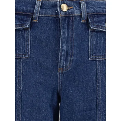 The Lotta High-Waisted Jeans by 7FOR All Mankind combine classic lines with refined details. The medium wash and vertical front seam elongate the silhouette, while the decorative flap pockets with gold finishes add a sophisticated touch. The zip and button closure ensure everyday practicality, complemented by a clean back pocket. The wide, full-length leg flows from the fitted waist and hips, offering natural elegance.