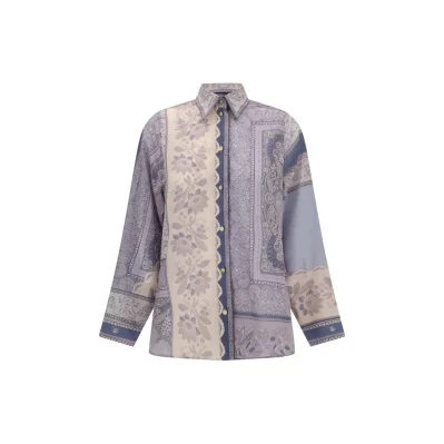 Zimmermann’s Lucky relaxed Shirt is a sophisticated and feminine style piece, featuring a classic collar and a practical front button closure. Made with attention to detail, it is distinguished by its refined all-over paisley and floral pattern, which lends a boho-chic and romantic touch. Perfect for pairing with tailored pants or flowing skirts, this shirt combines elegance and originality in an iconic design from the Australian brand