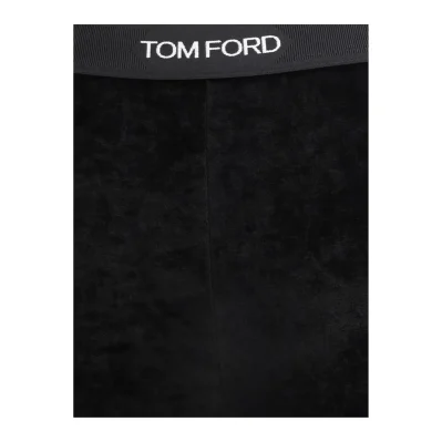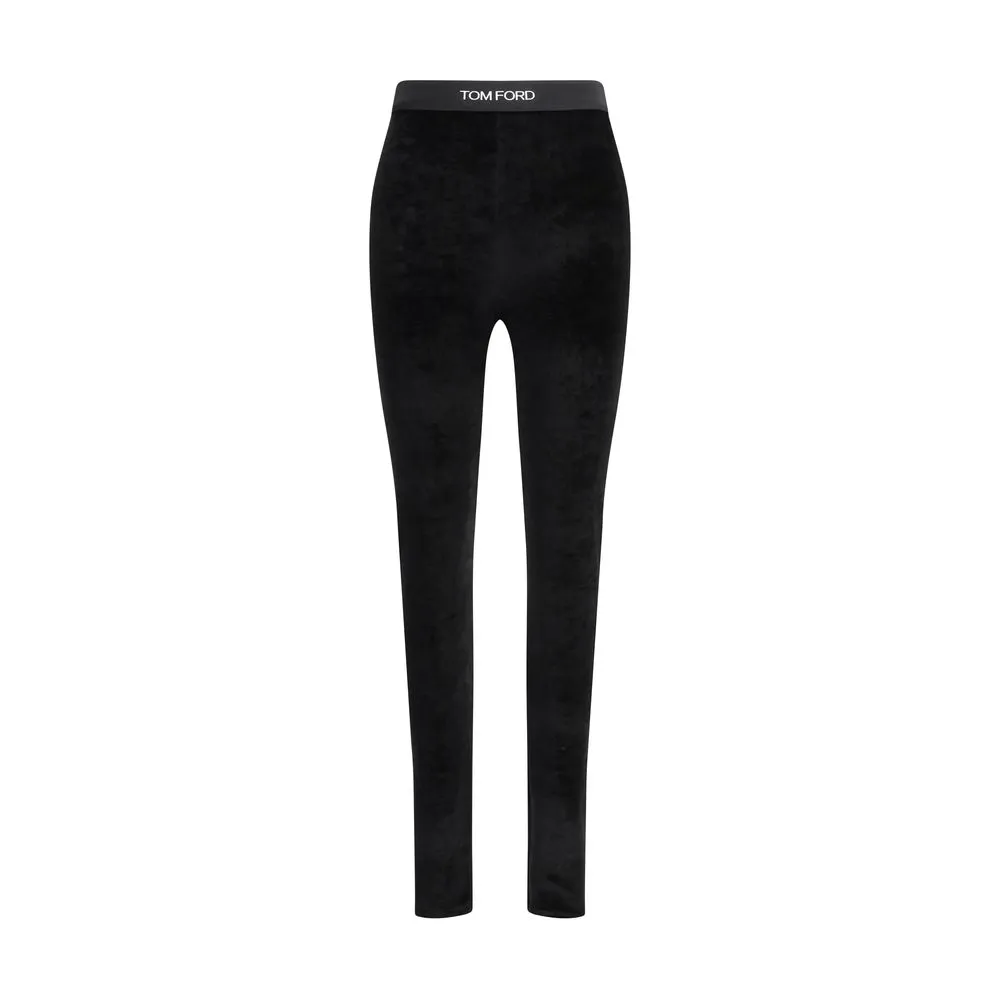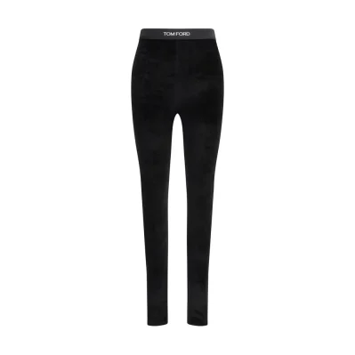 Lustrous Leggings by Tom Ford, velvet design, elasticated waistband with contrasting iconic brand monogram detail, slim fit,