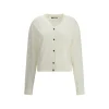 Jacquemus’ merino wool Cardigan combines elegance and comfort with a V-neckline and front button closure. Finished with a ribbed hem and cuffs, it is embellished with an embroidered logo on the back for a distinctive, modern touch.