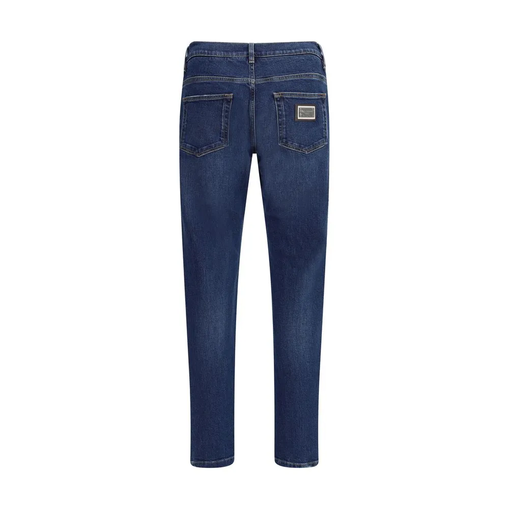 Cotton Jeans by Dolce&Gabbana with a mid-rise designed to provide a comfortable, modern fit. The button-and-zip front closure ensures practicality, while belt loops allow you to complete the look with a belt of your choice. The five-pocket style offers functionality and classic style, enhanced by the applied logo hardware on the back, which adds a distinctive and refined touch to the garment. Perfect for a casual yet polished outfit.