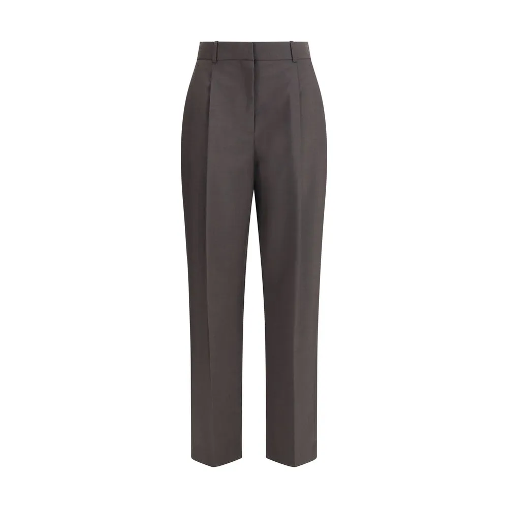 The Mikkela trousers by The Row crafted from fine lightweight virgin wool and mohair. This high-waisted tailored design features a straight leg with stitched front pleats that enhance the silhouette, completed by slanted side pockets for a clean and sophisticated finish.