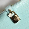 Mint Green Embossed Leather Padlock Shoulder Bag