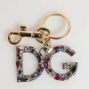 Multicolor Crystal DG Logo Gold Keychain Charm Keyring