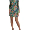 Multicolor Geometric Print Silk Crystals Midi Dress