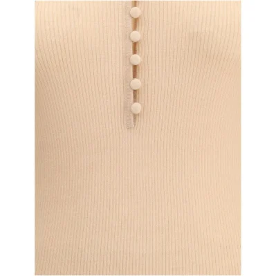 The Merino Wool Henley Sweater by Chloé brings everyday elegance to life with refined details. Rib-knit construction frames the V-neckline with fabric-covered buttons, complemented by long sleeves and a straight hem that enhance the clean silhouette. A versatile and comfortable piece, perfect for both sophisticated and relaxed looks.