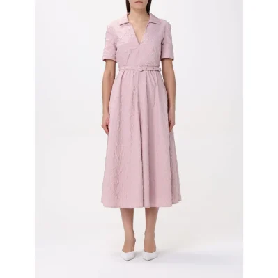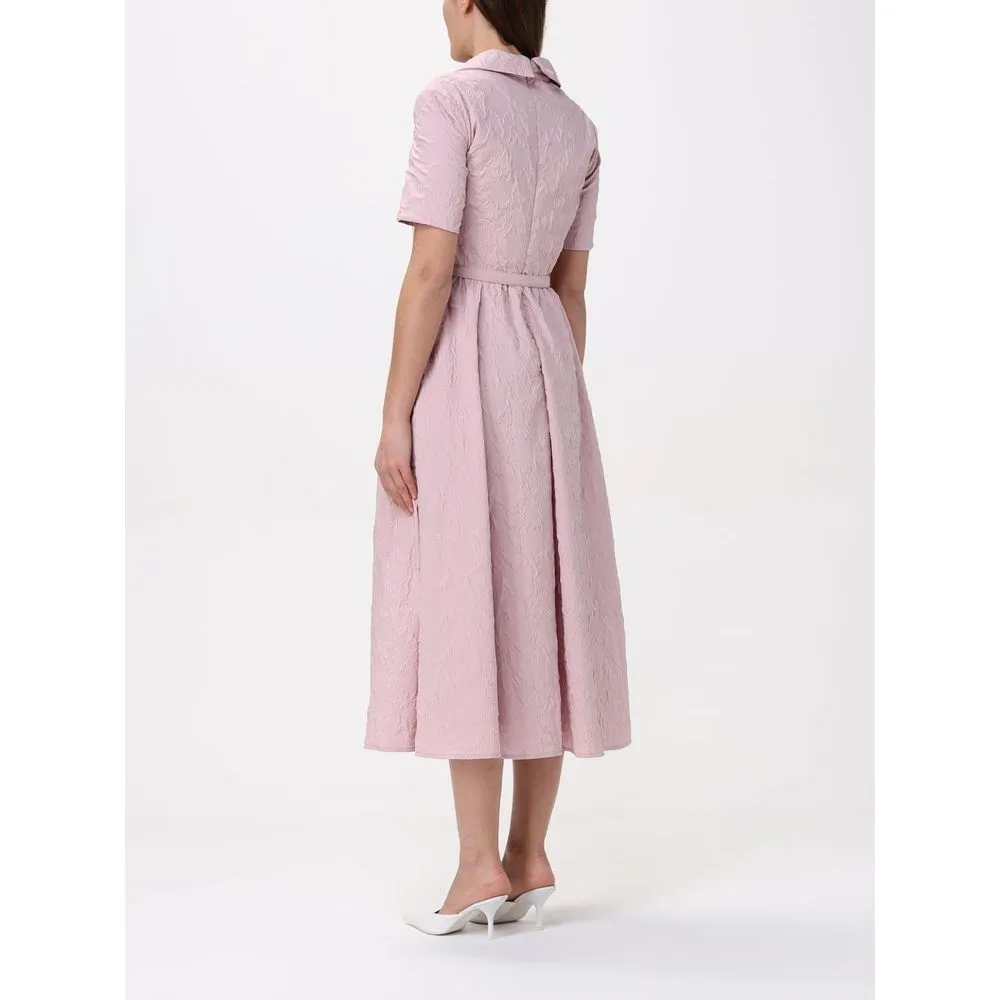 Elegant midi length Unique textured fabric Sophisticated collared V neck Flattering belted waist Comfortable short... Read More