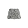 Self-Portrait’s Mini Pants-skirt is made of houndstooth wool and features a fitted fit that flatters the silhouette. The design is enhanced with a side zipper closure and a removable belt for added versatility. Two round buttons stand out on the front, adding an elegant and distinctive detail to this garment with a modern and sophisticated character.