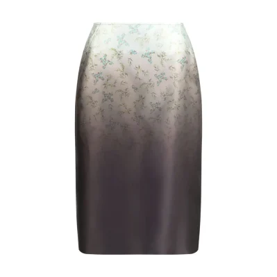 The Silk Printed Skirt by Jil Sander, embodies a poetic sense of elegance through its burnt green gradient tuxedo silk floral print. Featuring a regular waist, back zip closure, and rear slit, it showcases a refined straight silhouette that drapes gracefully. The lustrous silk texture and tonal depth evoke a sophisticated and timeless allure.