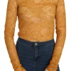 Mustard Turtle Neck Long Sleeve Lace Top Blouse