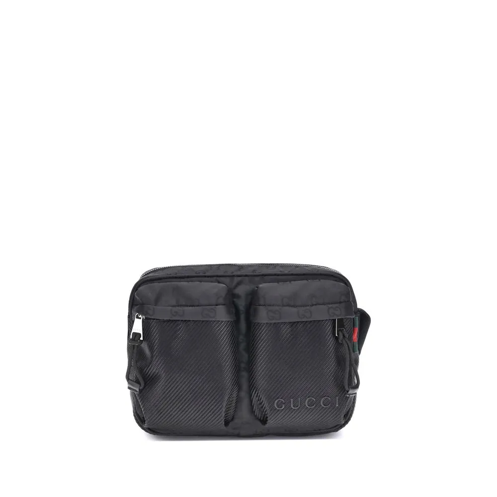 The Gucci Nexus Small Shoulder Bag is a practical and modern accessory. Made of durable black GG Nylon, it features the iconic green and red Web motif label and tone-on-tone Gucci logo, enhancing its discreet yet recognizable design.The interior features a padded compartment, ideal for protecting your belongings. On the outside, two zippered pockets provide additional space for essentials. Closure is via a secure zipper.