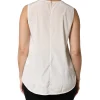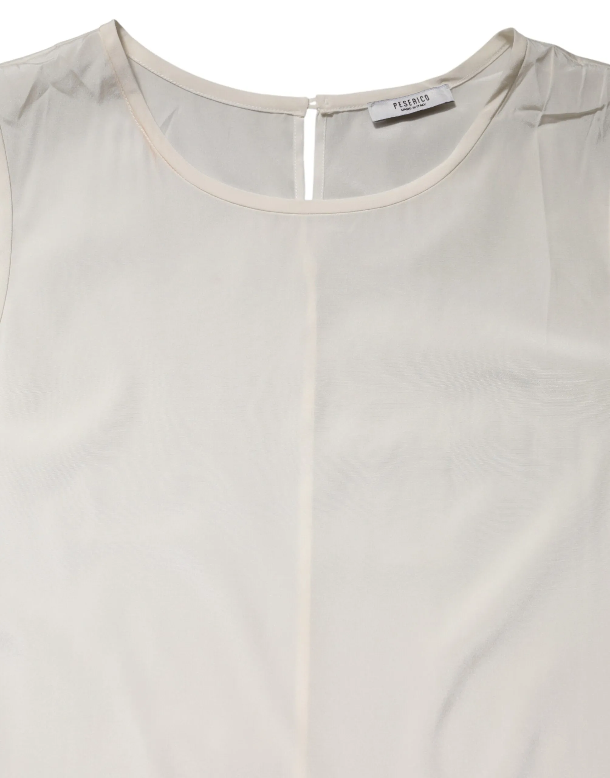top exudes understated elegance with its refined off-white hue and luxurious silk fabric. Designed with a classic round neckline and a sleeveless silhouette, it offers a soft, fluid drape that enhances any outfit. Perfect for sophisticated layering or chic minimalist looks.