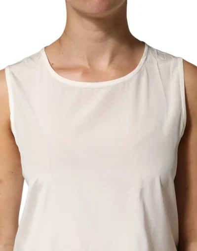 Off White Silk Stretch Roundneck Sleeveless Tank Top