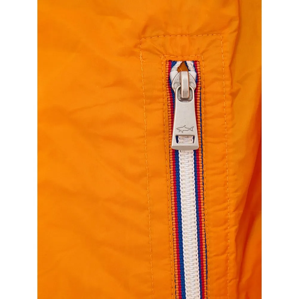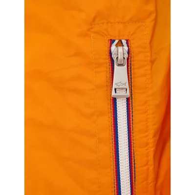 Paul & Shark Orange Lightweight Bomber Jacket in Technical Fabric. Contrasting front zip, two side zip pockets, knit collar and cuffs. Mesh lining.