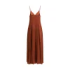 The silk long Dress by Forte_Forte is an elegant slipdress featuring refined silver yarn details that give a delicate luminous effect. The model features a V-neckline and thin straps, enhancing the silhouette with lightness and femininity. A sophisticated and flowing garment, perfect for special occasions with discreet appeal.