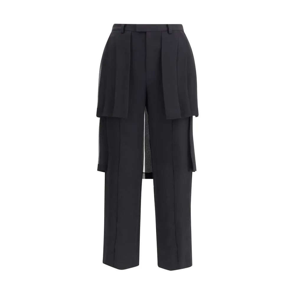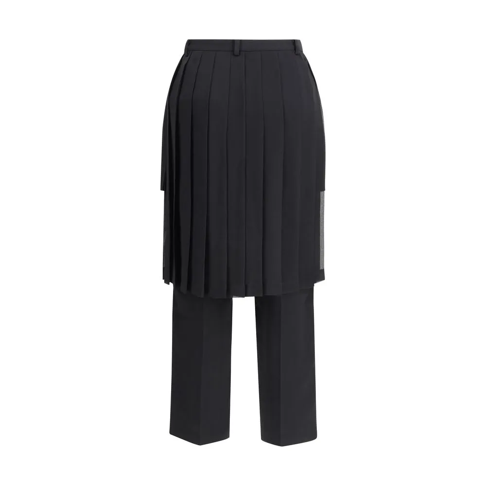 Undercover’s Organza Pants combine structure and lightness in a modern, sophisticated design.The straight, slim silhouette is enhanced by an impalpable fabric that ensures comfort and fluidity.Hidden pockets maintain clean, minimal lines,while the overlapping organza pleated skirt lends a touch of ethereal, unexpected elegance.