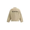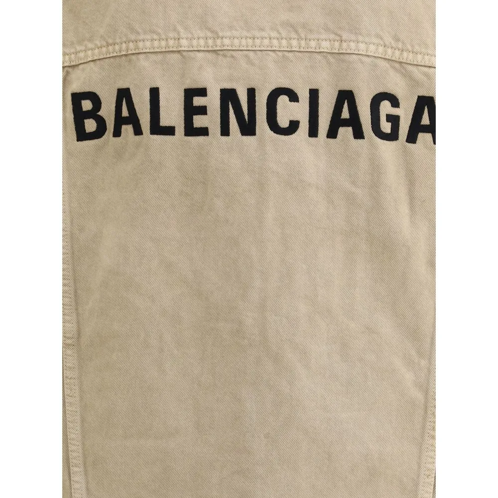 The oversized Denim Jacket by Balenciaga features a 7-button closure, front flap pockets and side slit pockets. Adjustable cuffs and waist with Balenciaga engraved metal buttons. The embroidered logo on the back elegantly signs this iconic garment.