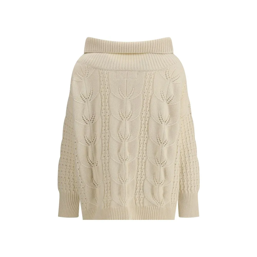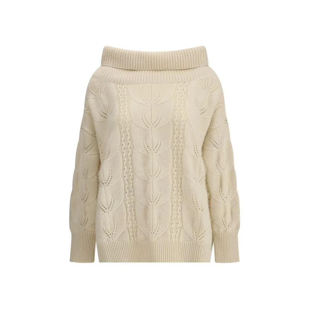 Ermanno Scervino’s oversized Sweater combines femininity and comfort with its perforated design and loose silhouette. Featuring a wide ribbed collar, it is finished with ribbed cuffs and hem for a sophisticated and contemporary touch.