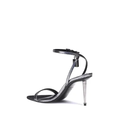 Tom Ford’s padlock Sandals are distinguished by a sleek pointed toe shape and the brand’s truly iconic metal stiletto heel. The signature metal padlock gives an exclusive detail, while the ankle strap with adjustable buckle, embellished with the engraved Tom Ford logo, ensures a perfect and refined fit.