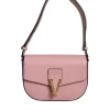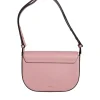 Pink Grainy Calf Leather Logo Crossbody Shoulder Bag