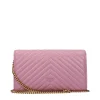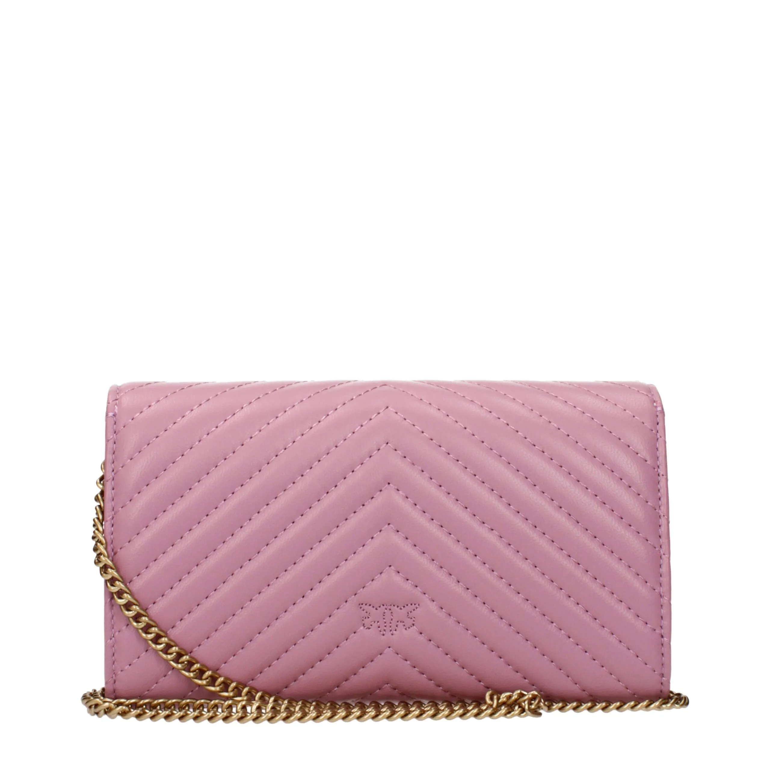 The product with MPN 100062A0GKN46Q and code F82238 leather in pink is a clutches designed by Pinko. It has features like front logo, vintage effect, removable shoulder, divider inner pocket.