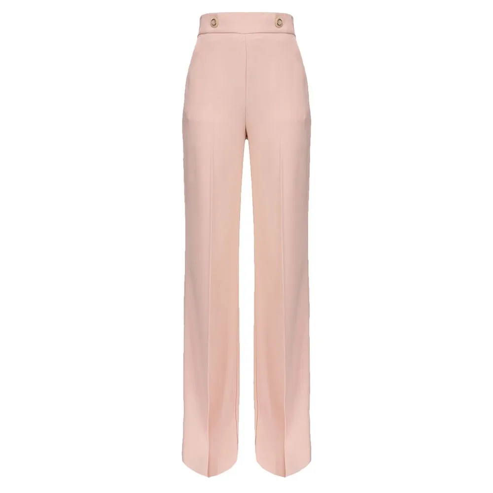 Make a statement with the PINKO Sbozzare 8 trousers. These bold, ripe pink trousers are a blend of sophisticated Italian design and edgy details. Crafted with a comfortable mix of polyester and elastane, they feature a high waist accented by chic buttons, and a unique offset leg cut at the bottom for a touch of avant-garde. Perfect for those who dare to stand out with their style game. PINKO infuses every piece with a sense of daring and trend-focused sensibility.