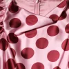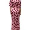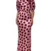 Pink Red Polka Dot Silk Satin Maxi Gown Dress