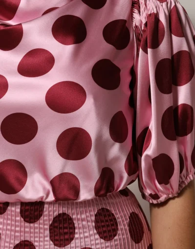 Gorgeous brand new with tags, 100% Authentic Dolce & Gabbana maxi dress.Crafted in luxurious silk satin with a touch of stretch, this elegant gown features a bold pink base with contrasting red polka dots. Designed with a flattering boat neckline, puffed half sleeves, and a smocked high waist that flows into a long, sleek skirt. Perfect for evening events and special occasions.