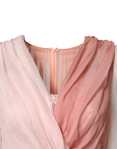 Pink Silk Tulle Long Sleeve V-neck Dress
