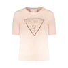 SHORT SLEEVED SWEATER, CREW NECK, CONTRASTING DETAILS, APPLICATIONS, RHINESTONE, LOGO
