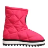 Gorgeous brand new, 100% Authentic Dolce & Gabbana features a playful pink and white colorway in a padded mid-calf boot design. Crafted from soft viscose fabric, these boots offer a cozy yet stylish look, perfect for statement winter wear. With their modern silhouette and luxurious feel, they’re a standout addition to any fashion-forward wardrobe.