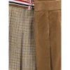 Thom Browne’s Pleated Miniskirt is a garment with a sophisticated and structured style, defined by an elegant double layer: one in smooth velvet and the other in houndstooth, for a refined textural effect. Complemented by two functional side pockets and the iconic striped side band, it perfectly represents the brand’s distinctive aesthetic. The adjustable button closure ensures a comfortable and personalized fit. A bold and refined proposal for looks with a sartorial spirit.